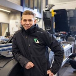 Het mooiste vind ik als er een truck binnenkomt met flinke schade of veel kapotte onderdelen – en wij die van A tot Z aanpakken. Alles wordt gerepareerd, vervangen, opgeknapt… tot het weer een truck is waar je trots op kunt zijn, met alle toeters en bellen erop en eraan. Het contrast tussen hoe zo’n voertuig binnenkomt en hoe het uiteindelijk vertrekt, is soms echt bizar. Als dan ook nog eens alles vlekkeloos is verlopen en iedereen z’n werk goed heeft gedaan, dan weet ik dat we als team iets moois hebben neergezet.